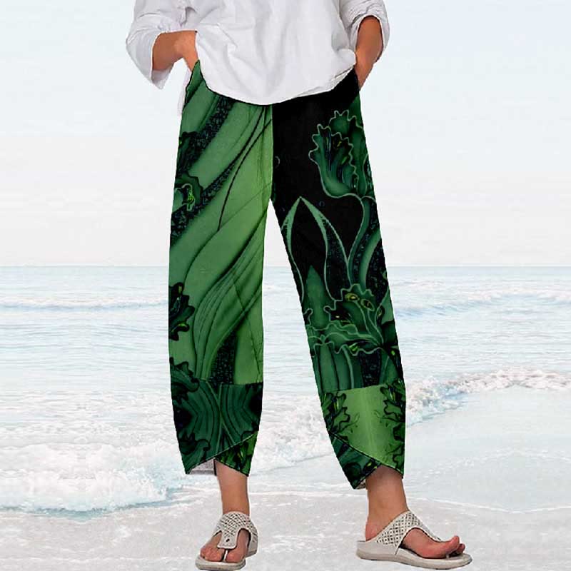 Dashingsoul Women's Creative Beach Style Floral Art Drawstring Casual Pants