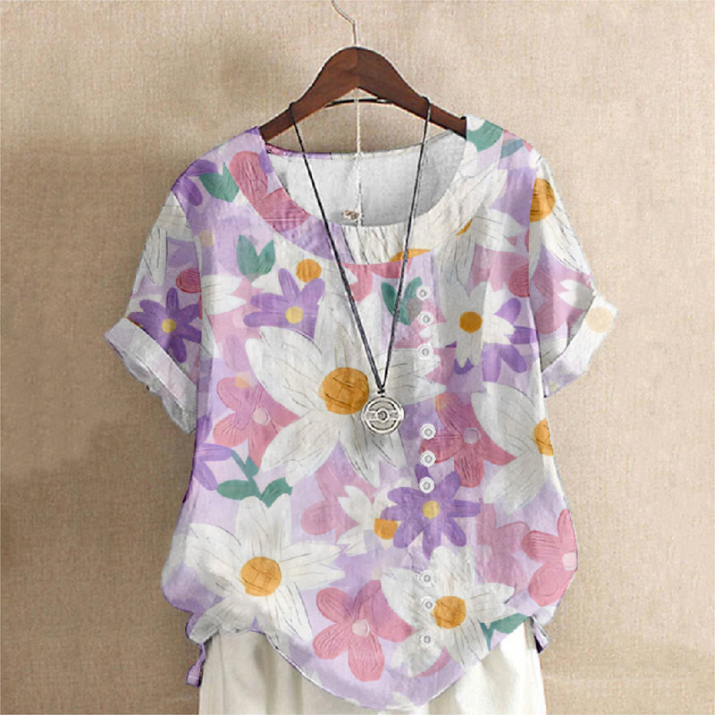 Dashingsoul Women's Oil Painting Colorful Chrysanthemum Flower Art Casual Blouse