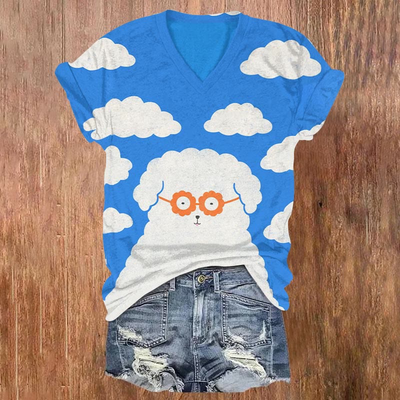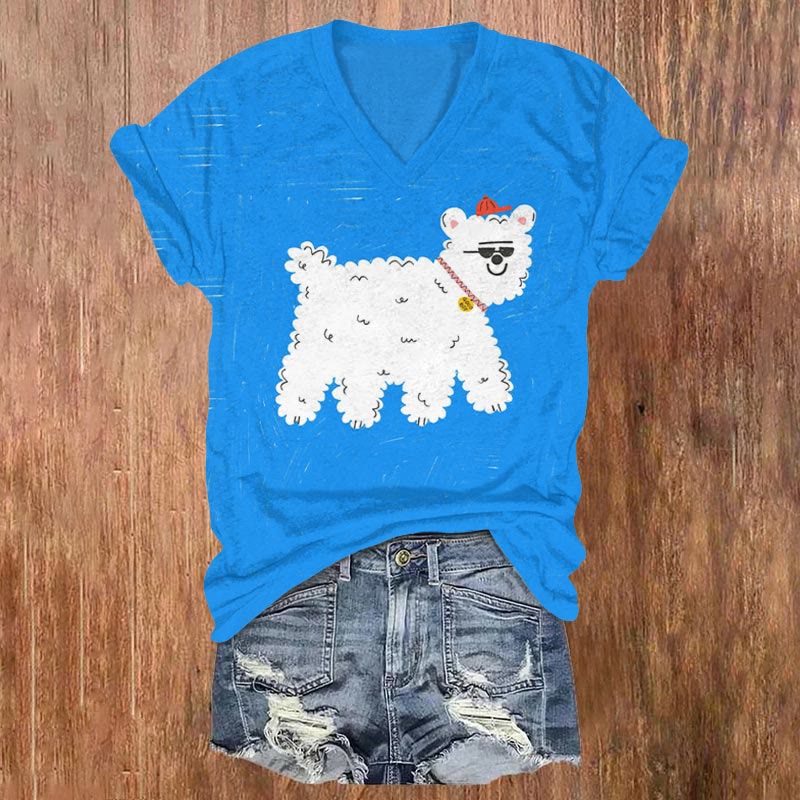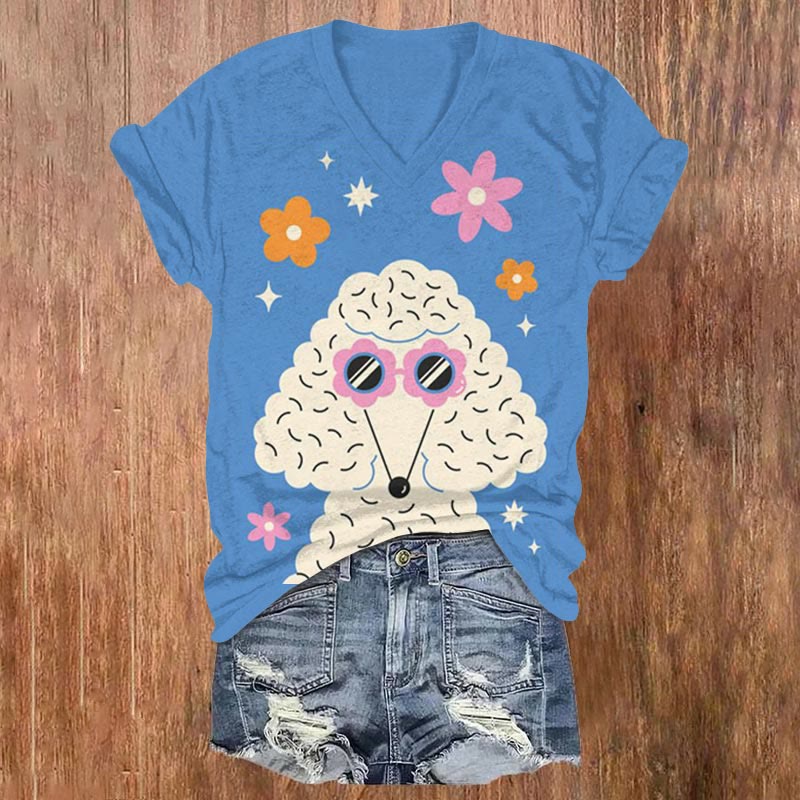 Dashingsoul Poodle Wearing Sunglasses Print V-neck T-shirt