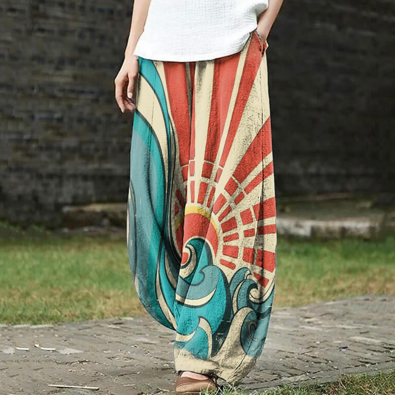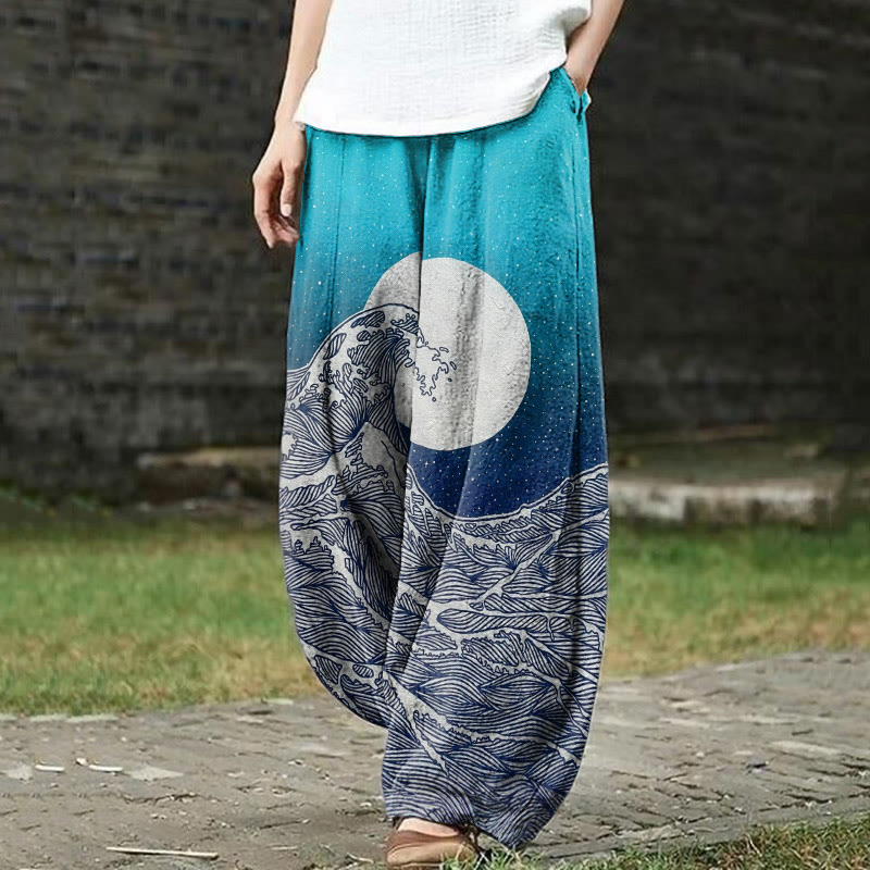 Dashingsoul Vintage Sea Waves Art Print Casual Pants