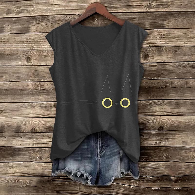 Dashingsoul Cute Funny Cat Face Print V-neck Tank Top