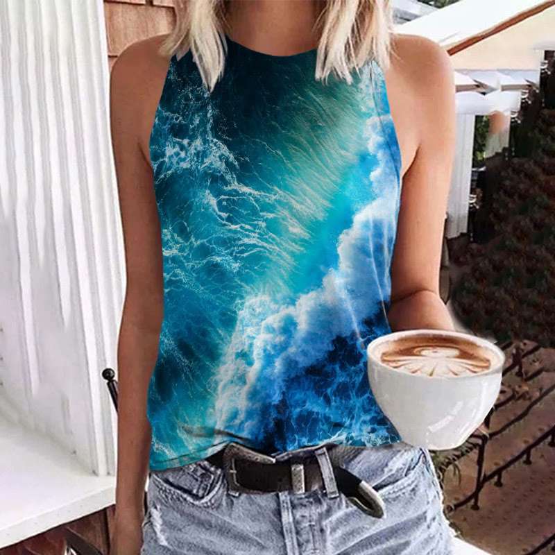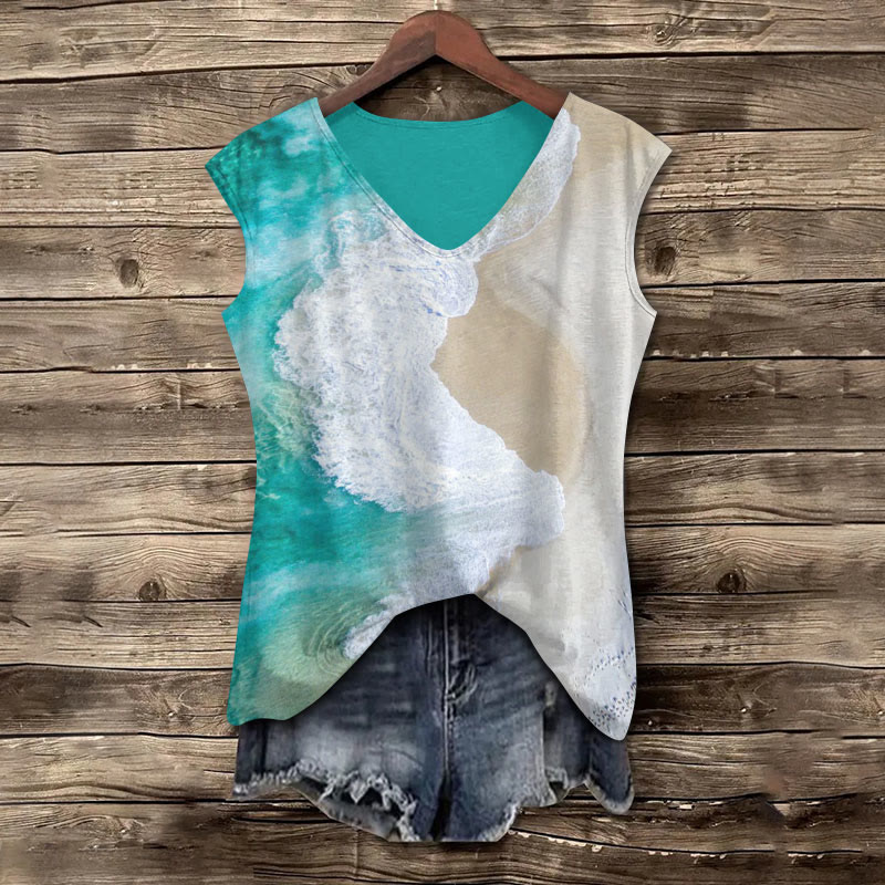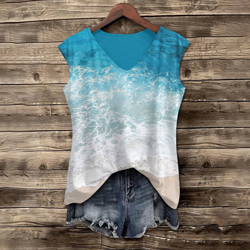 Dashingsoul Women's Beach Wave Ombre Art Print V-neck Tank Top
