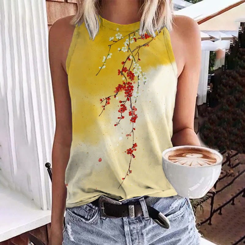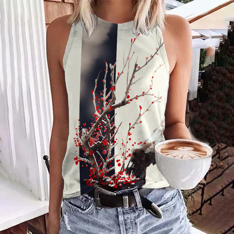 Retro Color Block Plum Blossom Ink Painting Art Print Women's Tank Top