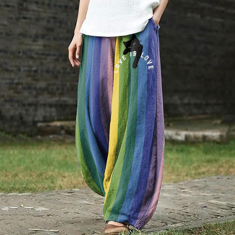 Dashingsoul Love Is Love Rainbow Black Cat Print Pants