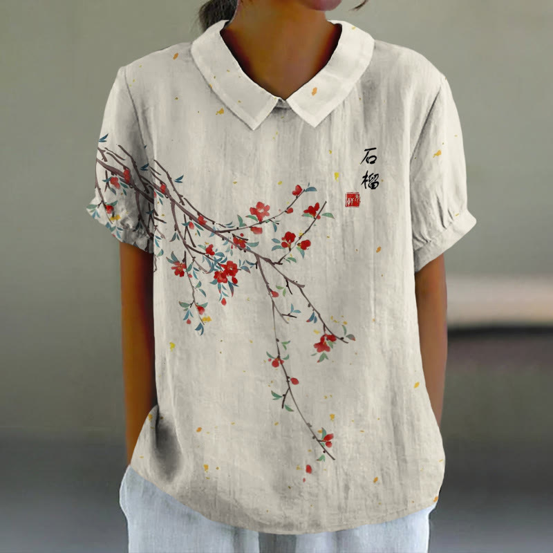 Dashingsoul Japanese Art Floral Vintage Print Casual Lapel Loose Blouse