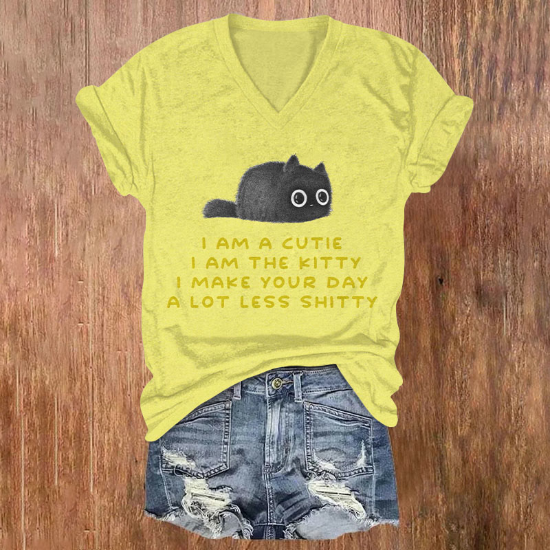 Dashingsoul I Am A Cutie I Am The Kitty Cat Print V-neck T-shirt