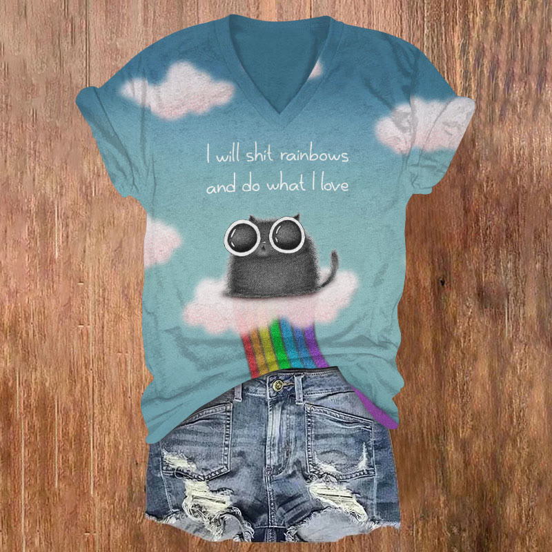 Dashingsoul I Will Shit Rainbows And Do What I Love Print V-neck T-shirt