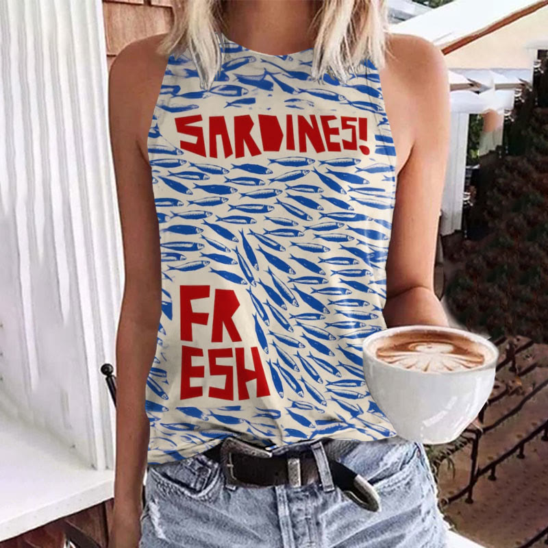 Dashingsoul Women's Japanese Vintage Fish Art Print Tank Top