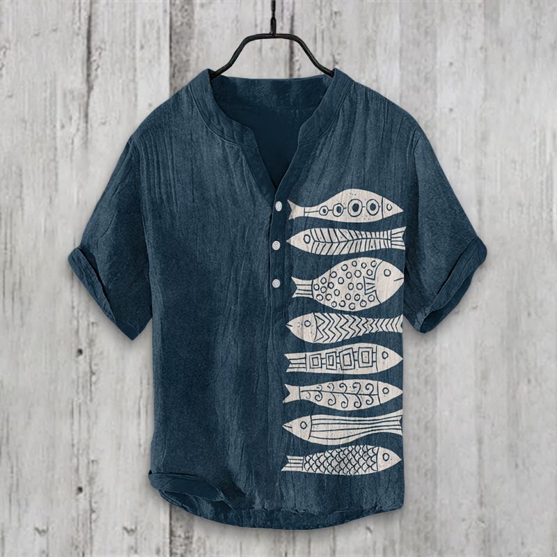 Dashingsoul Vintage Fish Sardines Art Print Short Sleeve Lapel Shirt