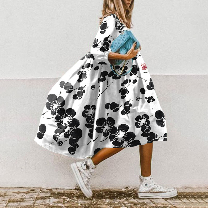 Women's Retro Floral Print Short-sleeved Midi Dress
