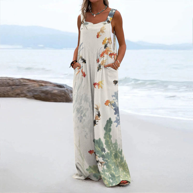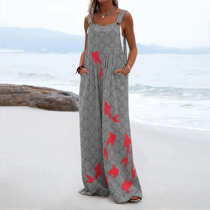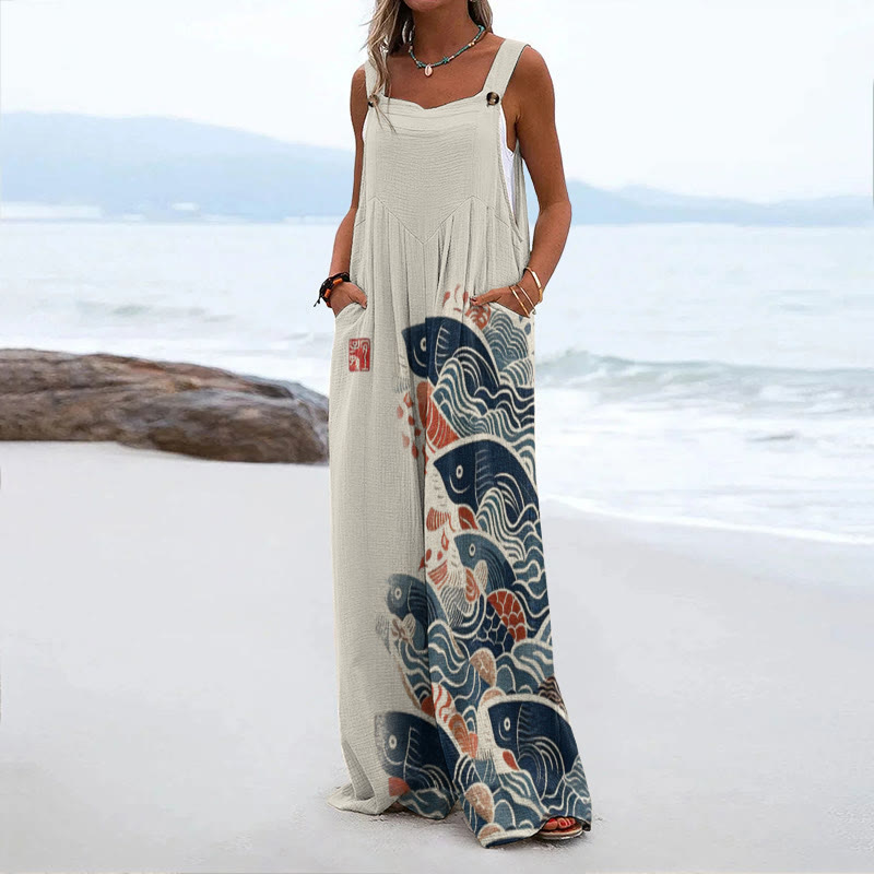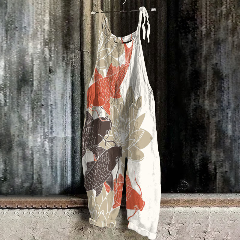 Women's Japanese Art Carp Print Casual Print Jumpsuit