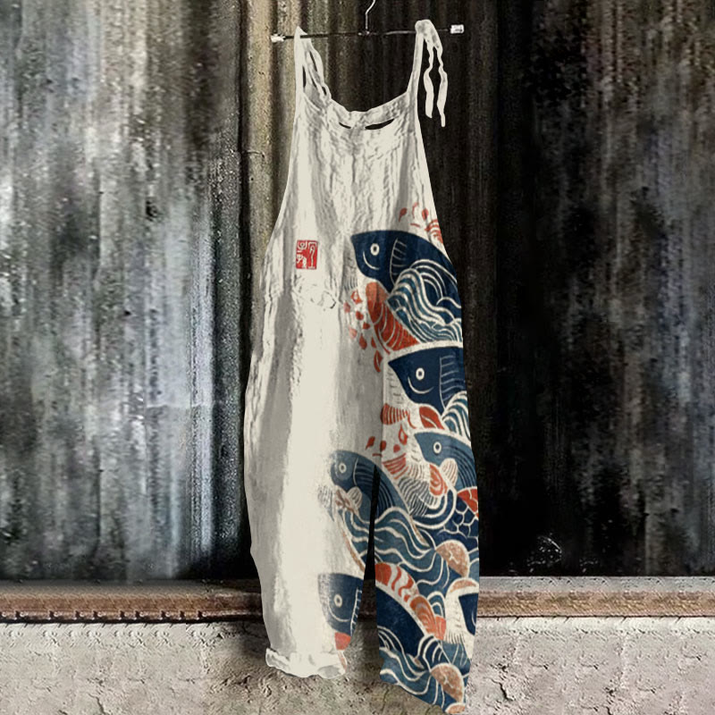 Dashingsoul Japanese Art Carp Print Casual Jumpsuit