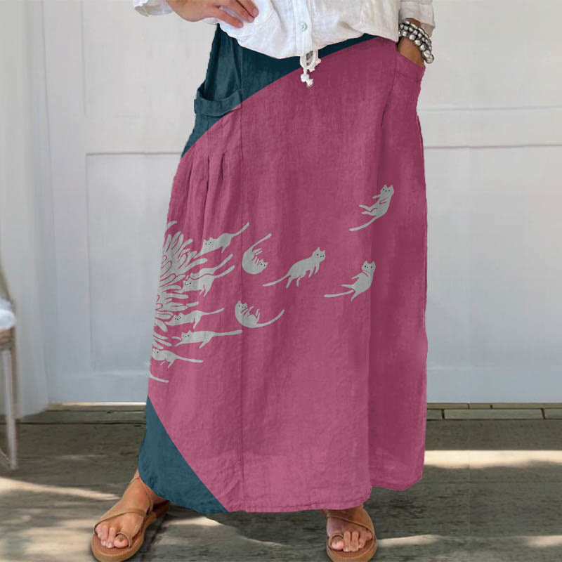 Dashingsoul Abstract Creative Dandelion And Cat Painting Art Print Casual Pocket Skirt