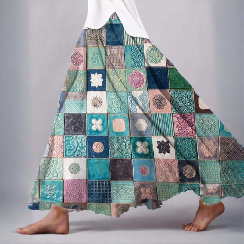 Dashingsoul Women's Colorful Floral Square Pattern Art Print Skirt