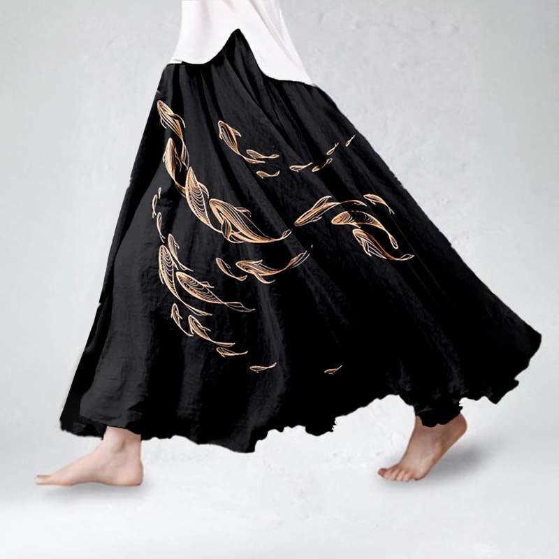 Dashingsoul Women's Japanese Retro Watercolor Goldfish Art Print Skirt