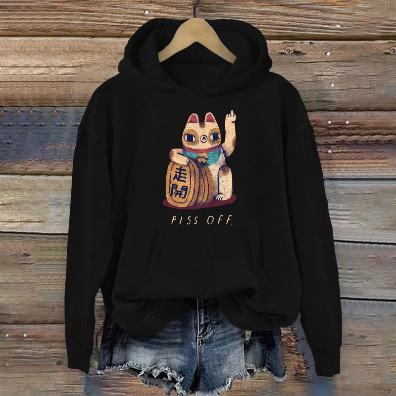 Cotton Funny Piss Off Cat Print Women's Hoodie