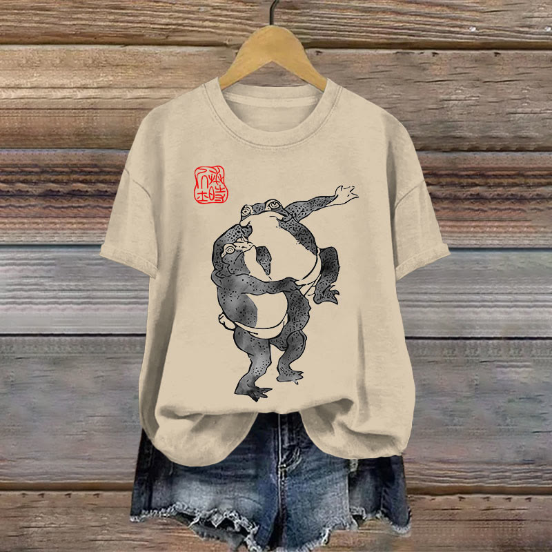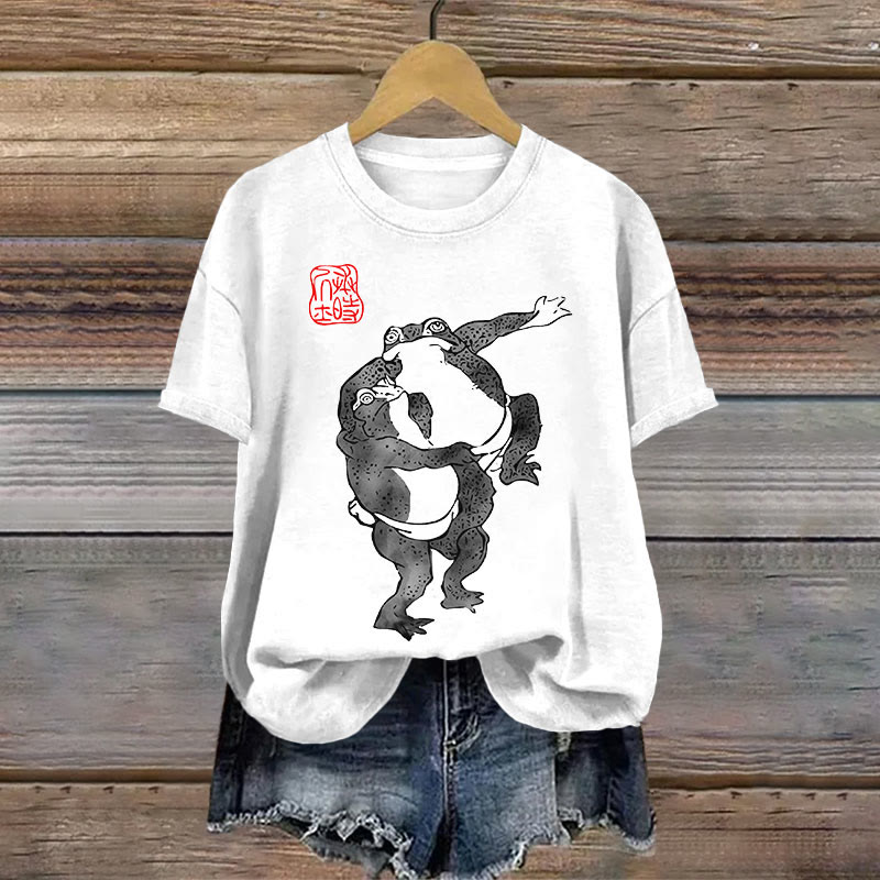Dashingsoul Cotton Japanese Retro Sumo Frog Print T-shirt