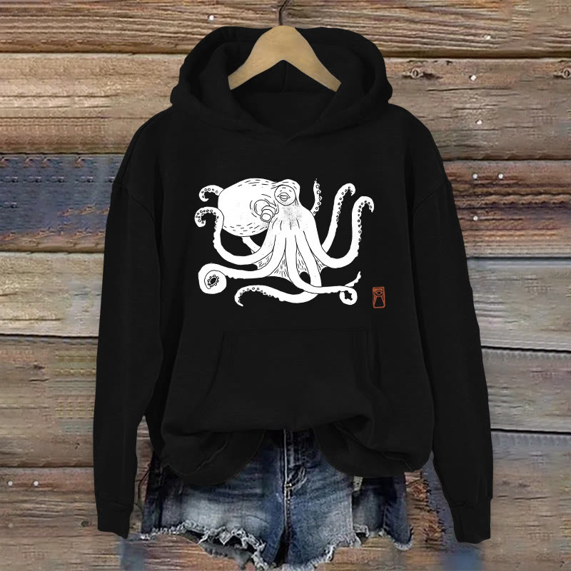 Cotton Octopus Print Women's Hoodie