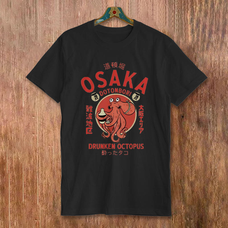 Cotton Osaka Japan Octopus Print T-shirt