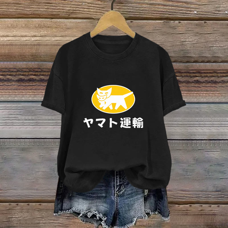 Cotton Ta-q-bin Cat Japanese Design Print T-shirt