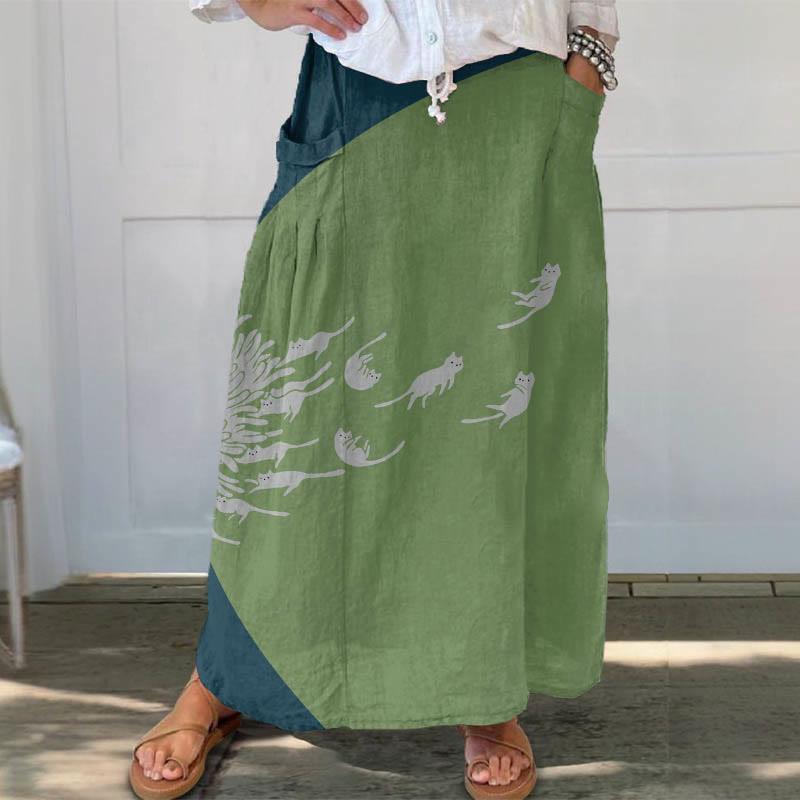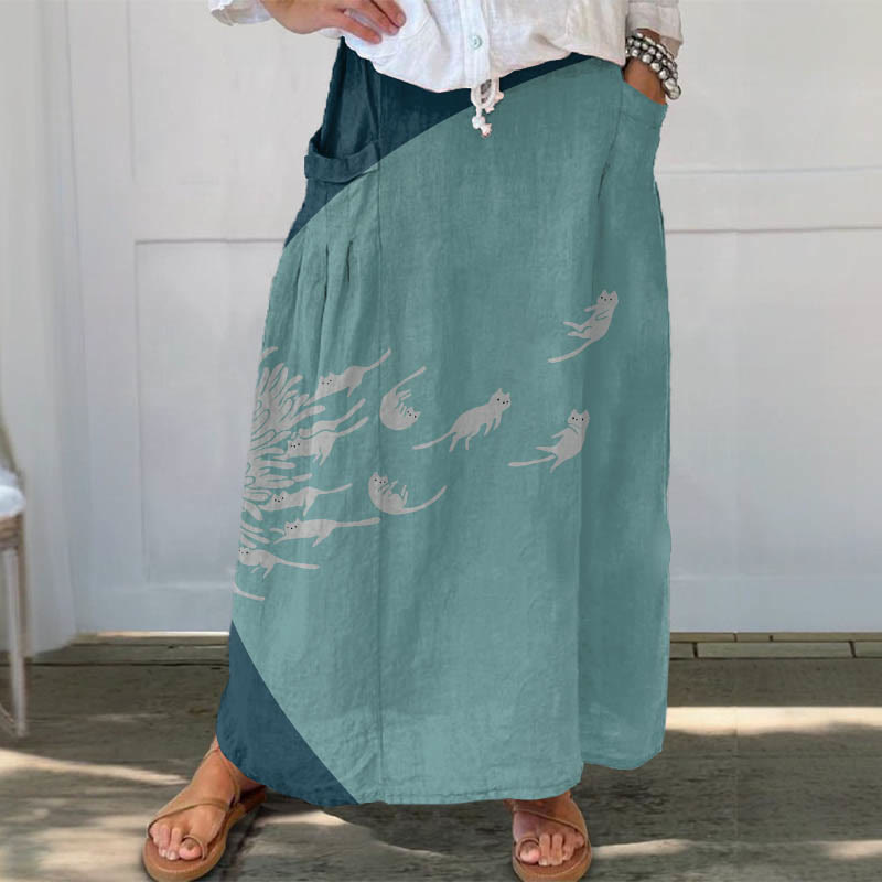 Dashingsoul Abstract Creative Dandelion And Cat Painting Art Print Casual Pocket Skirt