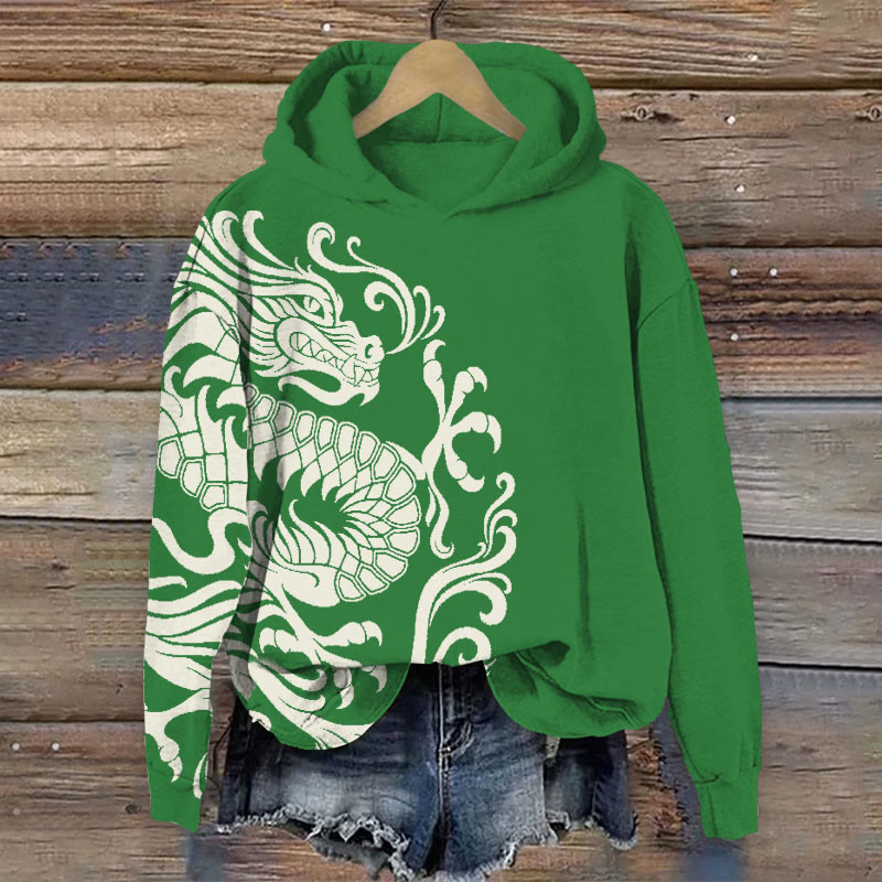 Art Dragon Print Long Sleeve Hoodie - Green - 8XL - image 3