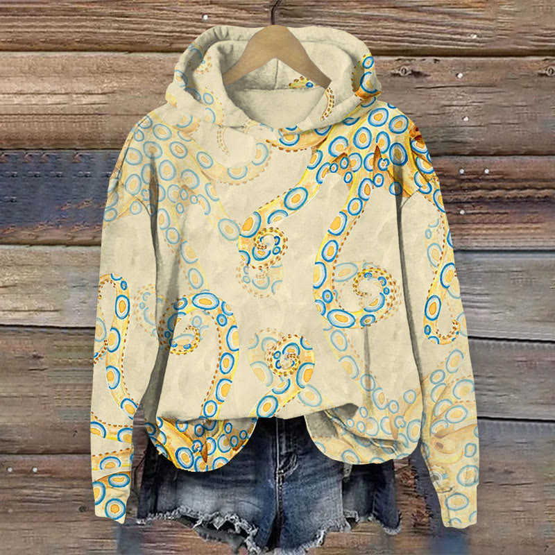 Art Octopus Print Long Sleeve Hoodie