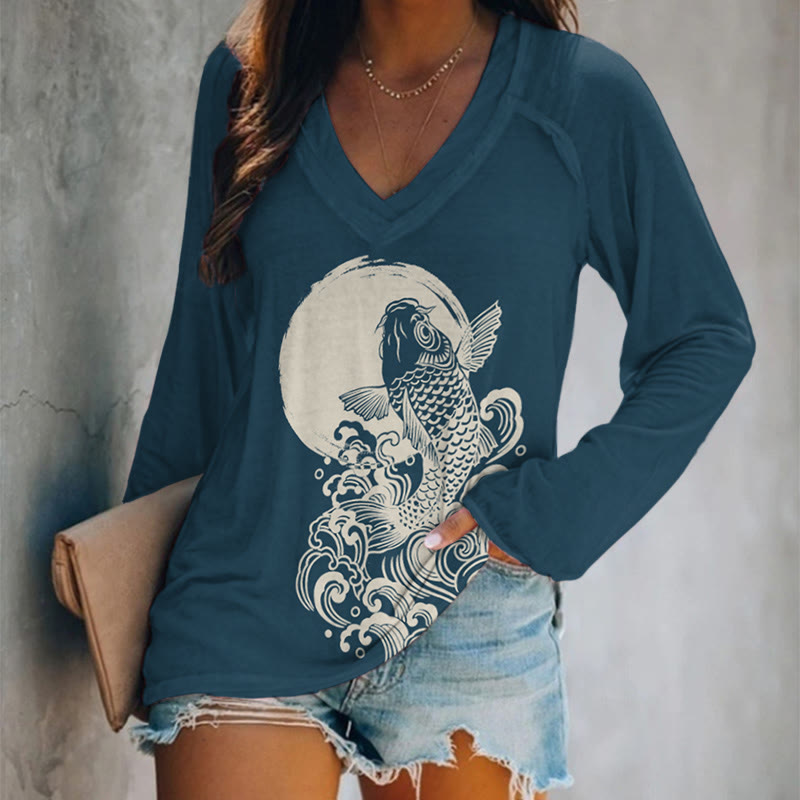 Dashingsoul Carp Jump Sunrise Japanese Art Print Long Sleeve T-shirt