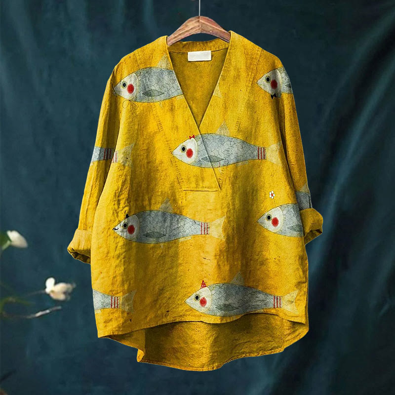 Dashingsoul Cute Fish Art Printed Casual V-neck Shirt
