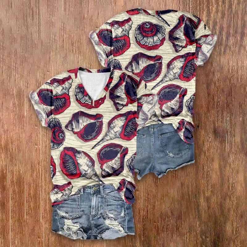Dashingsoul Dramatic Hand Painting Conch Art Print V-neck T-shirt