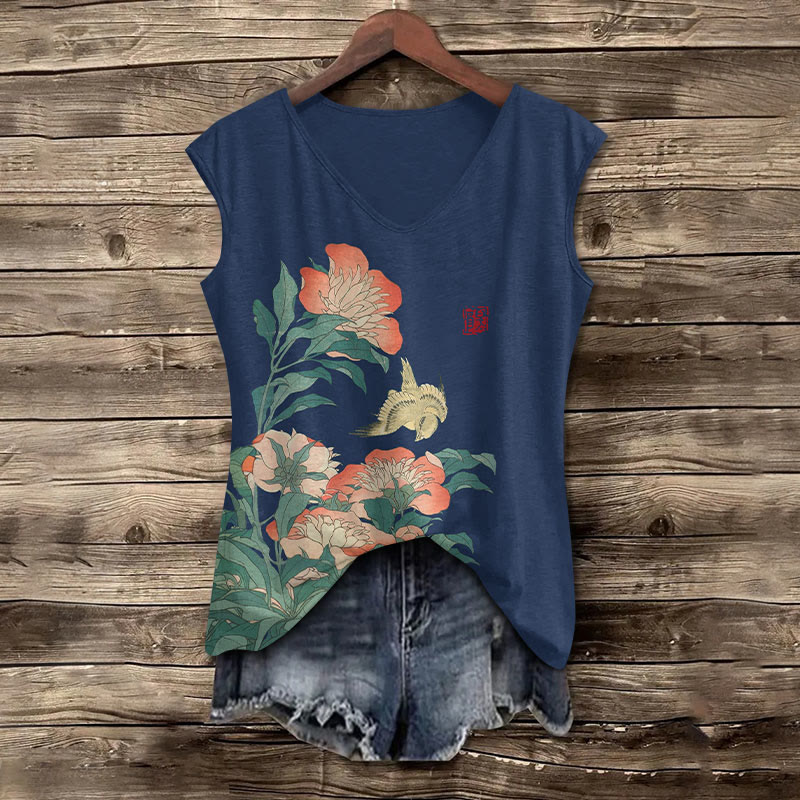 Flower Print V-neck Tank Top