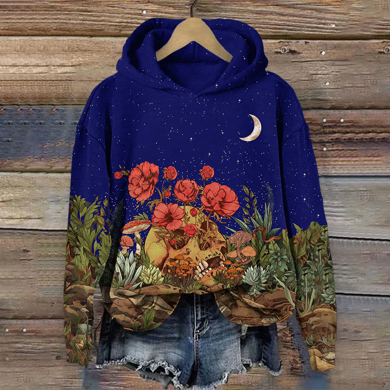 Halloween Skeleton With Flower Print Long Sleeve Hoodie