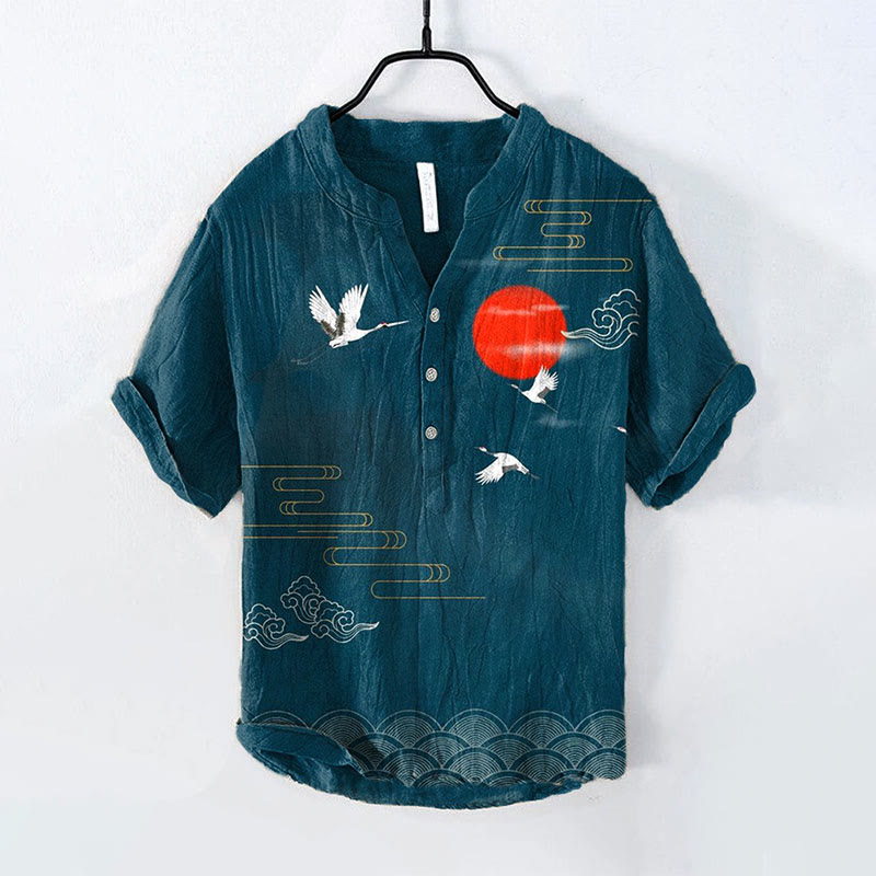 Dashingsoul Japanese Crane Art Print Casual Shirt
