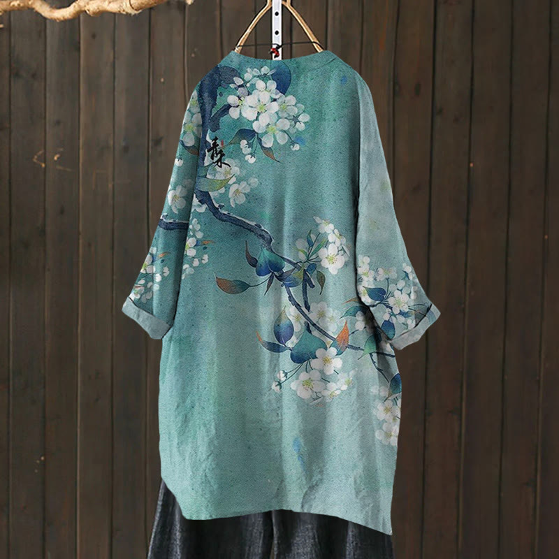 Dashingsoul Japanese Peach Blossom Print Cardigan