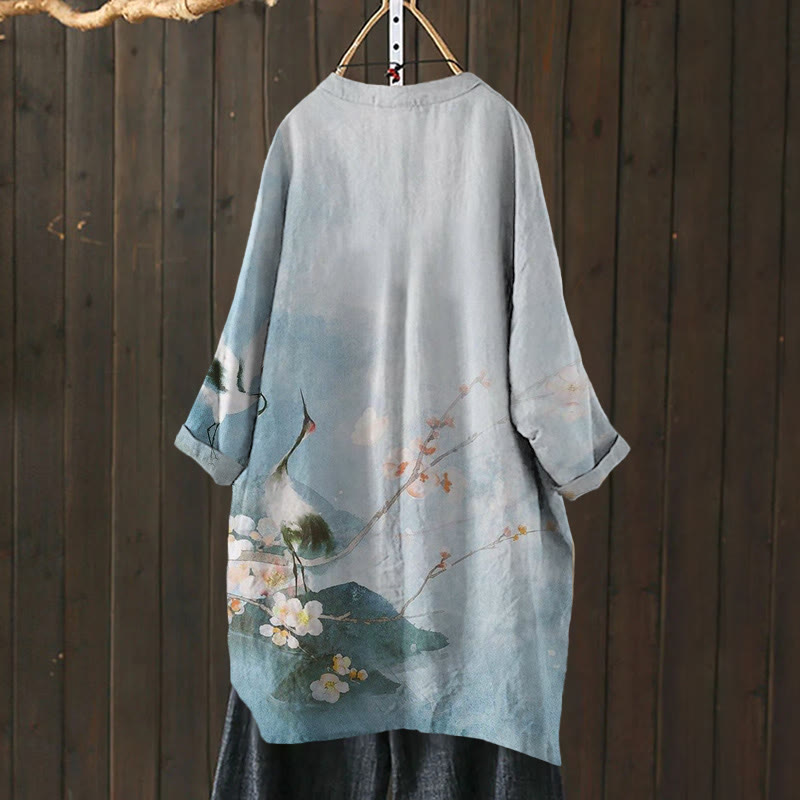 Dashingsoul Japanese Style Flower Red-crowned Crane Print Cardigan