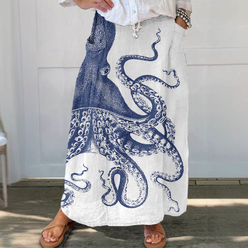 Dashingsoul Oil Painting Octopus Art Print Casual Pocket Skirt