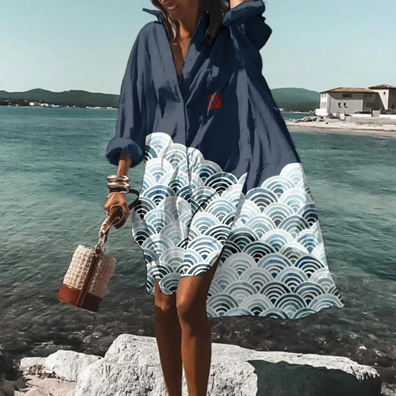 Dashingsoul Sea Waves Japanese Art Print Dress