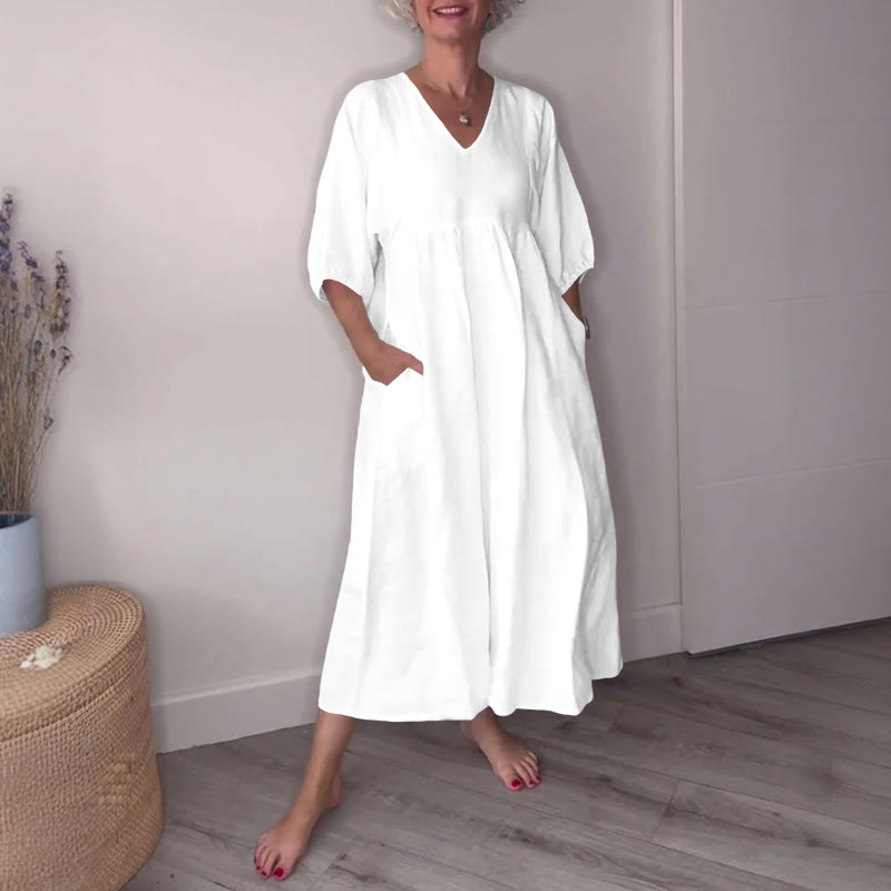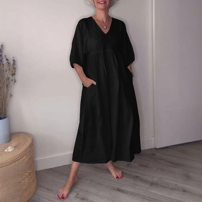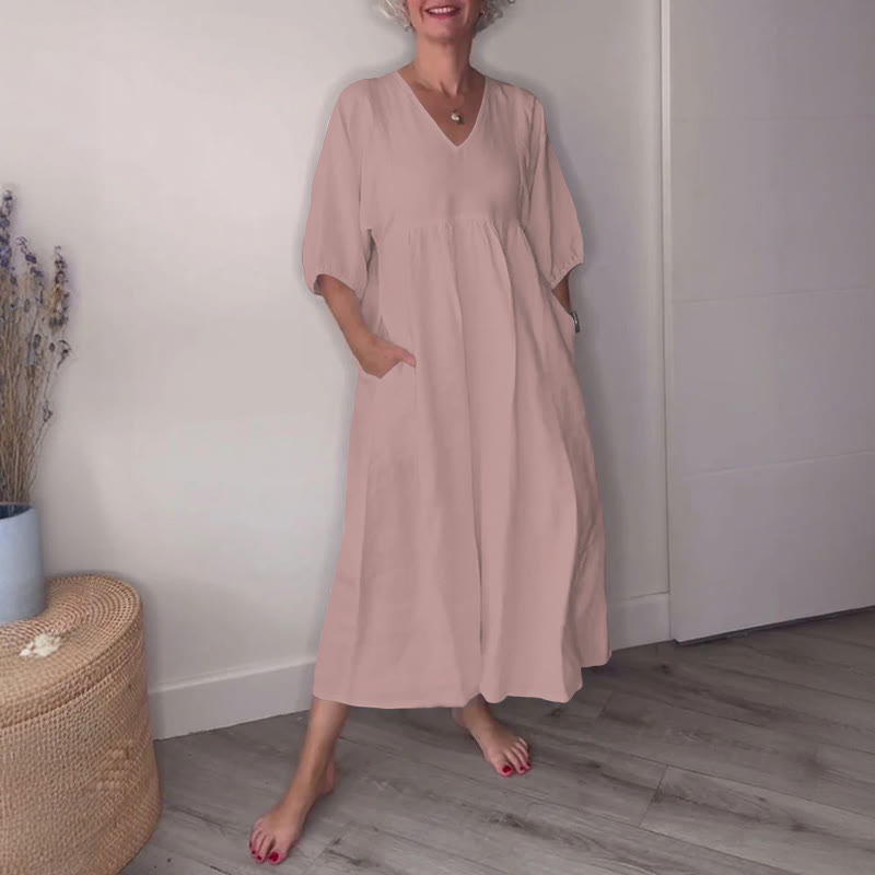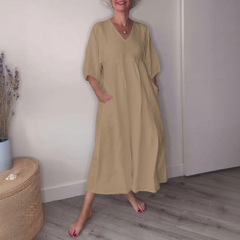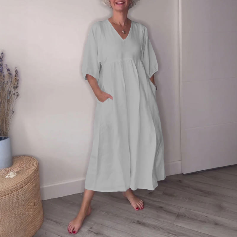 Dashingsoul Simple Casual Women's V-neck Solid Color Dress