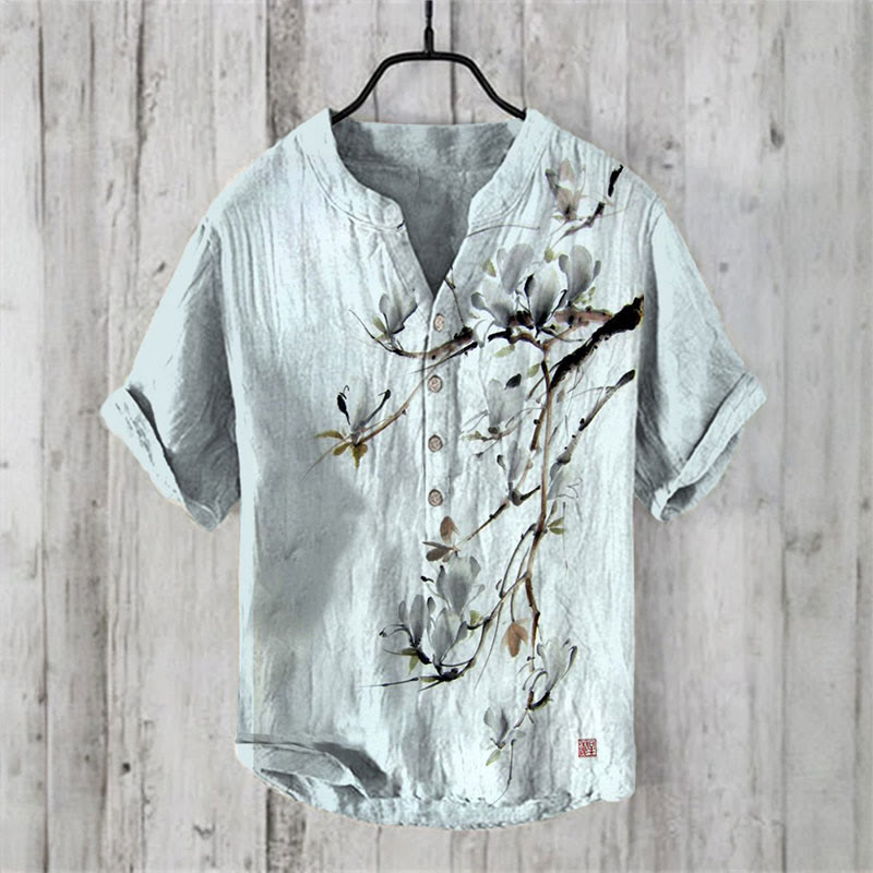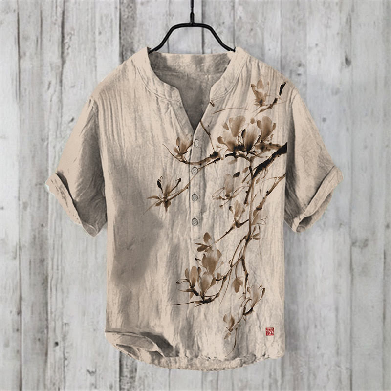 Dashingsoul Vintage Japanese Magnolia Flower Print Casual Shirt