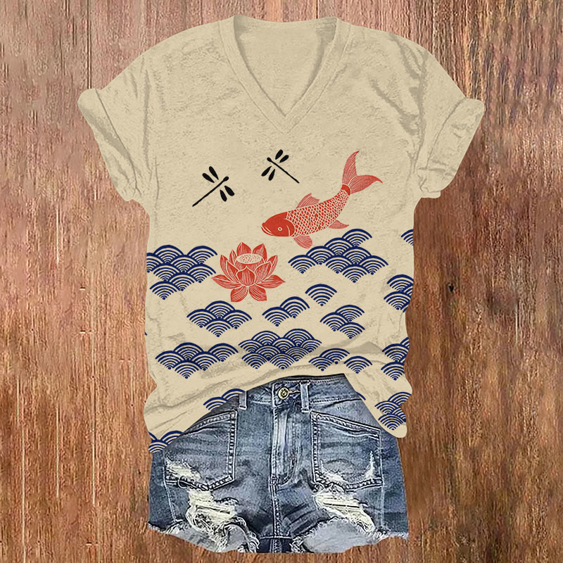 Vintage Koi & Lotus & Dragonfly Art Print T-shirt