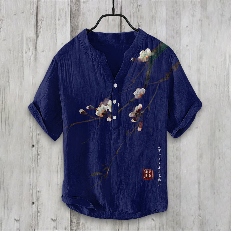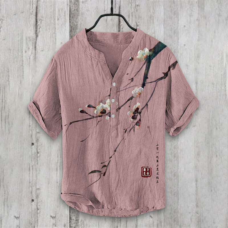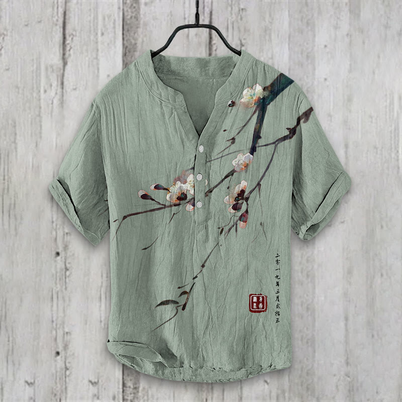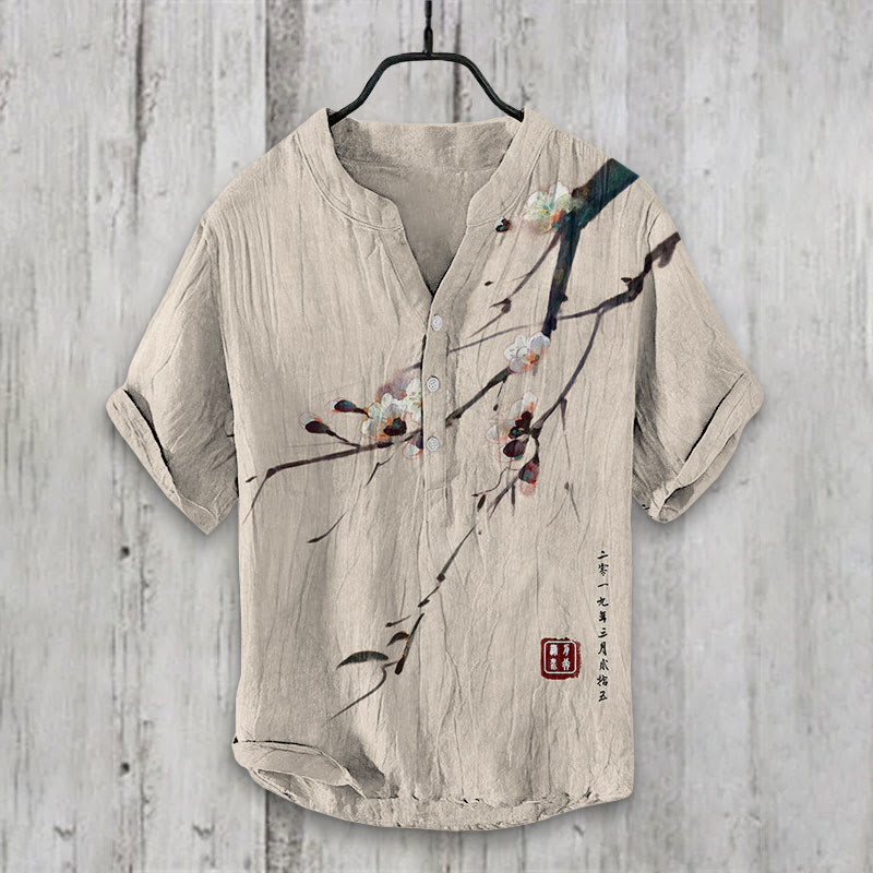 Dashingsoul Vintage Plum Blossom Art Print Casual Shirt