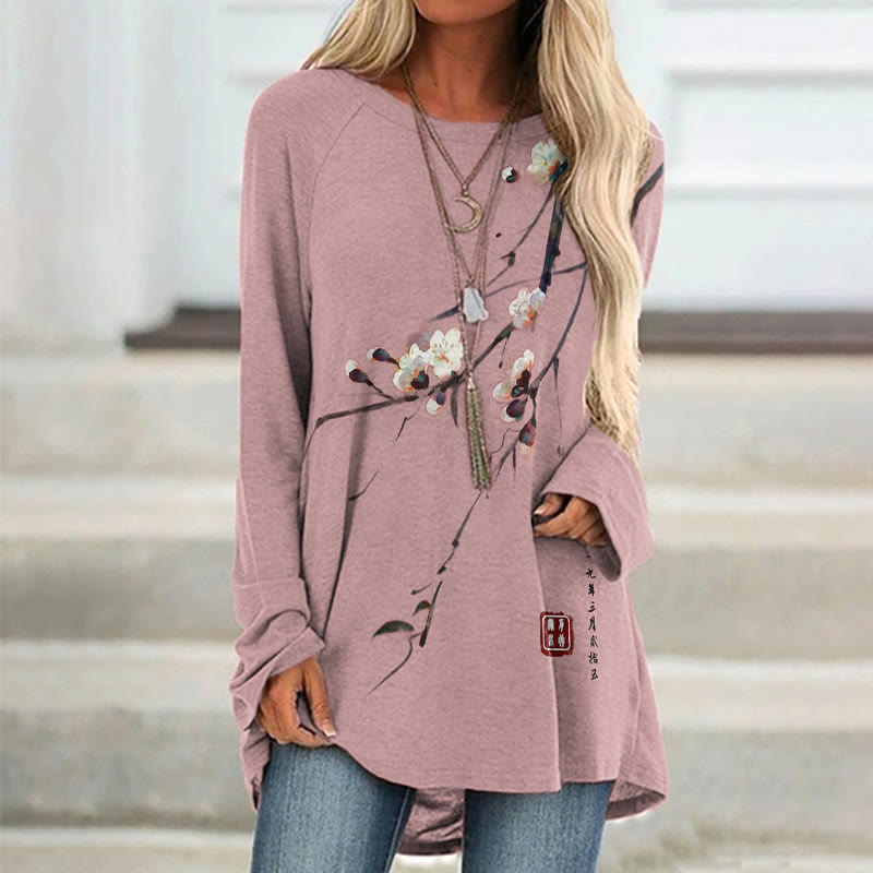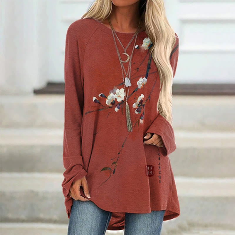 Dashingsoul Vintage Plum Blossom Art Print Casual Tunic