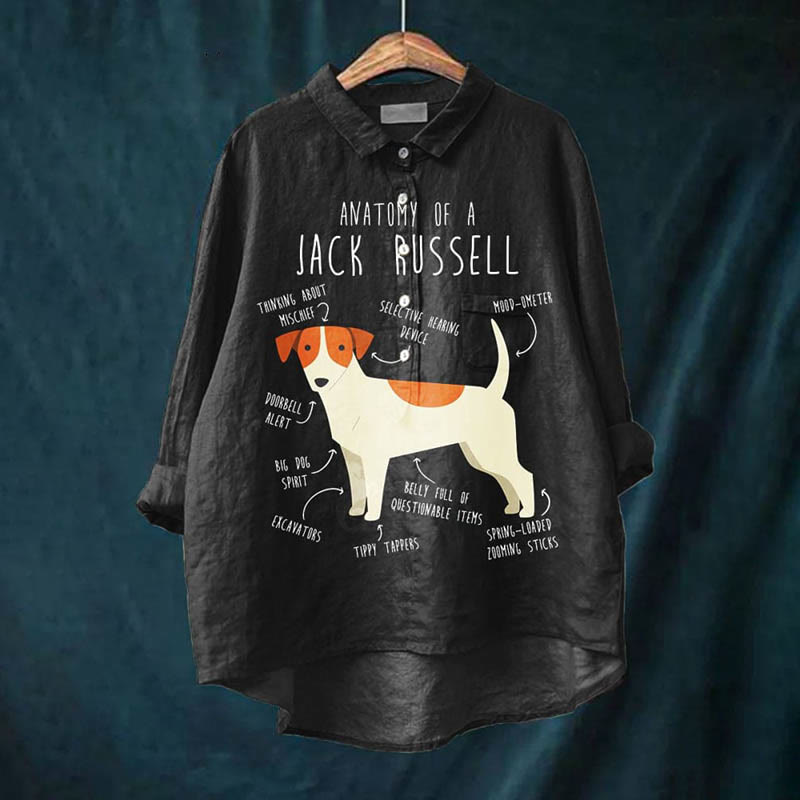 Dashingsoul Women's Anatomy Of A Jack Russell Art Print Casual Lapel Blouse
