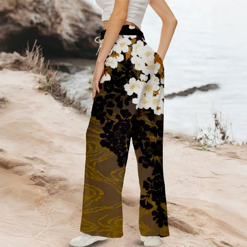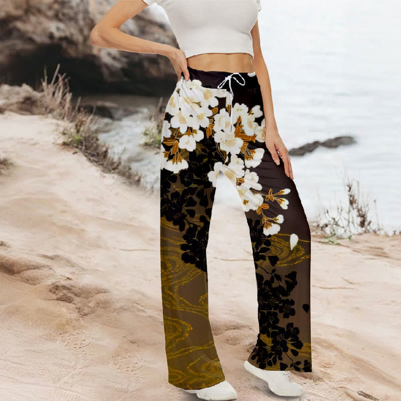 Dashingsoul Women's Blossom White Daisy Art Drawstring Casual Pants