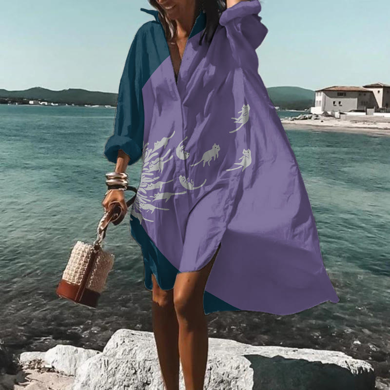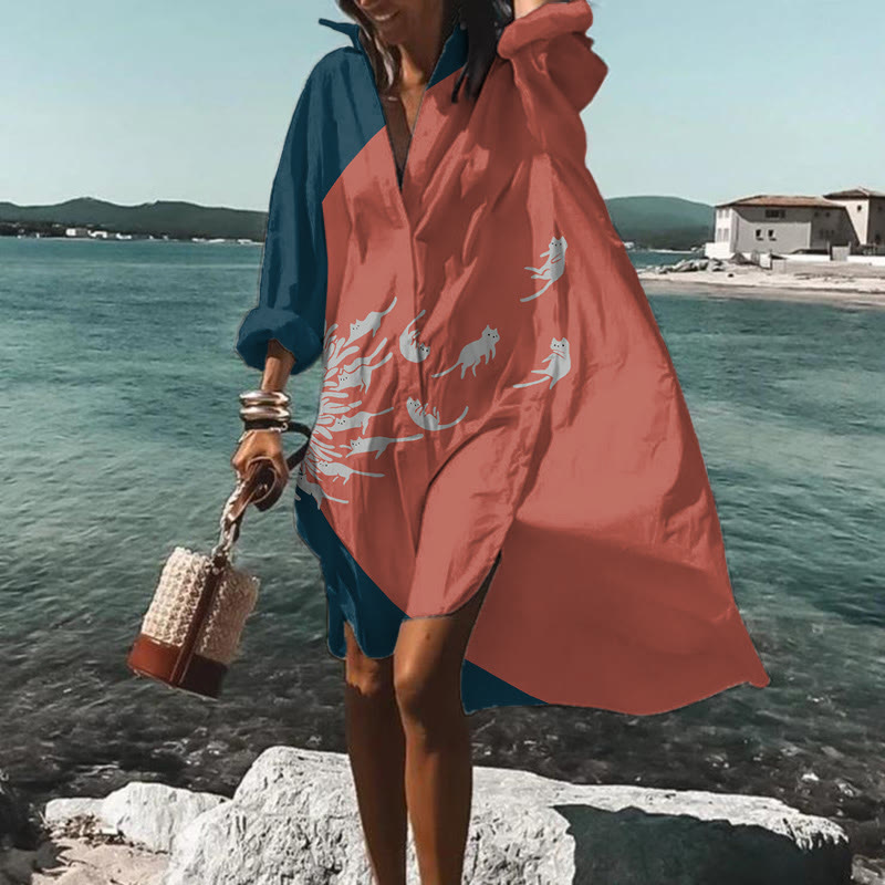 Dashingsoul Women's Creative Jumping Cats Vacation Vintage Print Shirt Dress