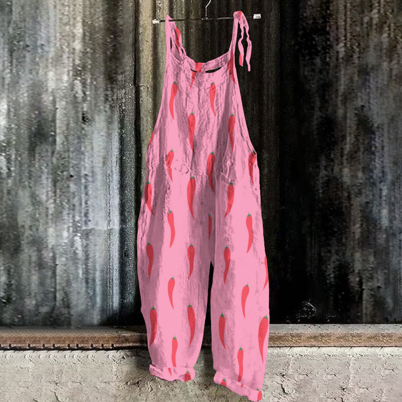Dashingsoul Women's Cute Chili Pepper Pattern Print Casual Jumpsuit
