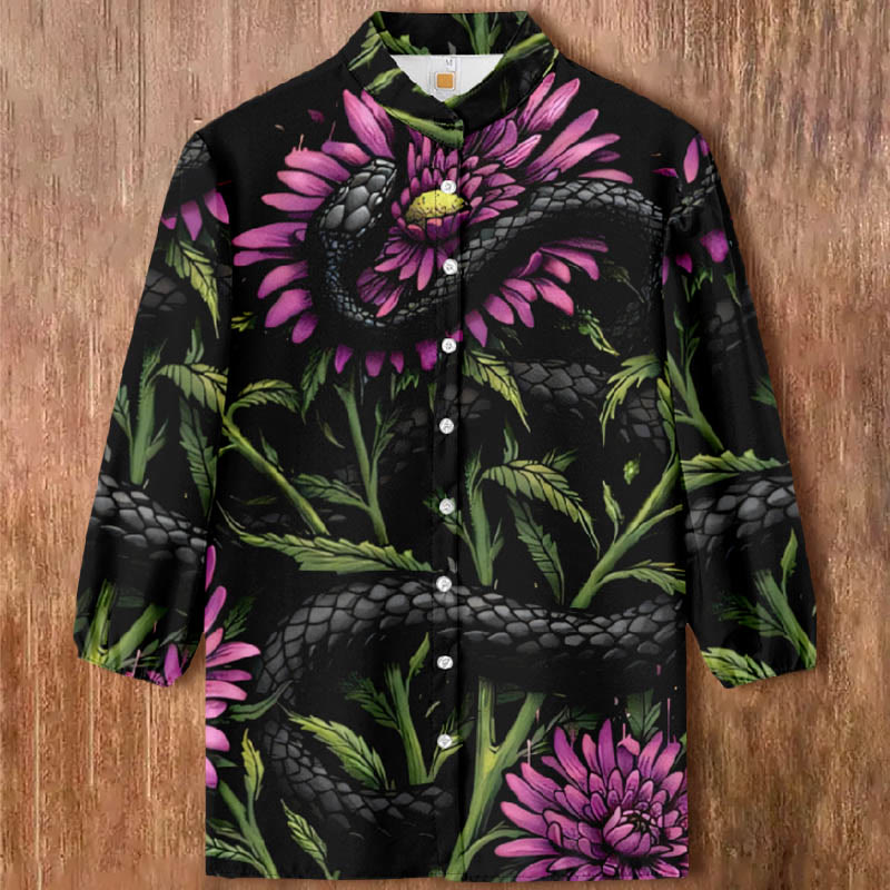 Dashingsoul Women's Fantasy Purpurea Blossom Art Print Casual 3/4 Sleeve Blouse