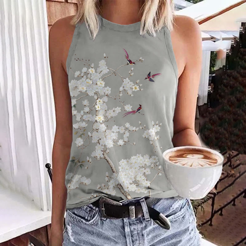 Women's Floral Print Tank Top - Khaki - 5XL - image 1
