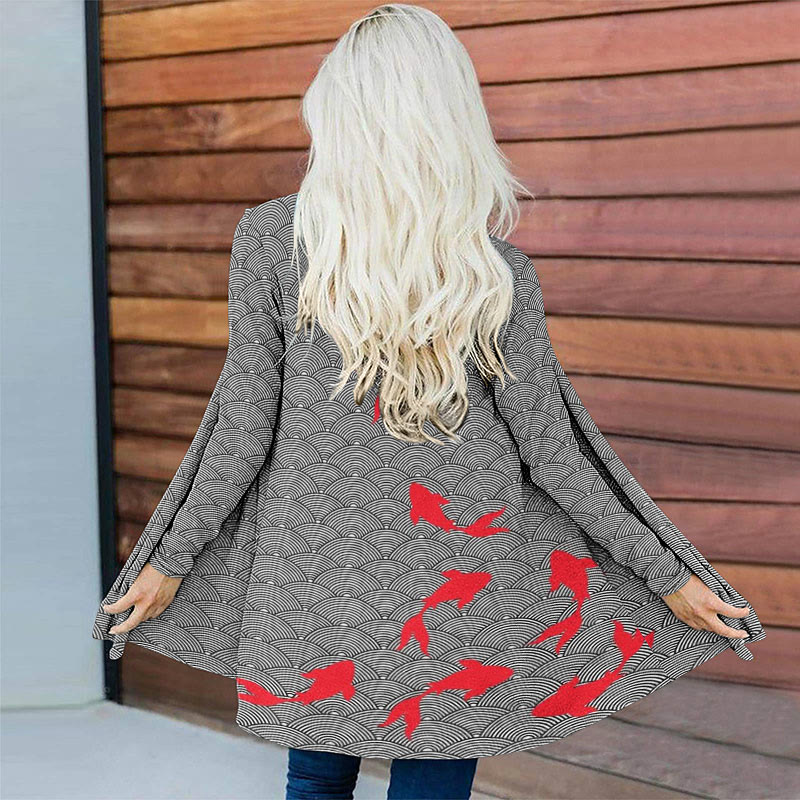 Dashingsoul Women's Japanese Goldfish Art Print Long Sleeve Cardigan
