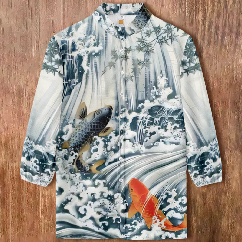 Dashingsoul Women's Japanese Koi Art Print Casual 3/4 Sleeve Blouse